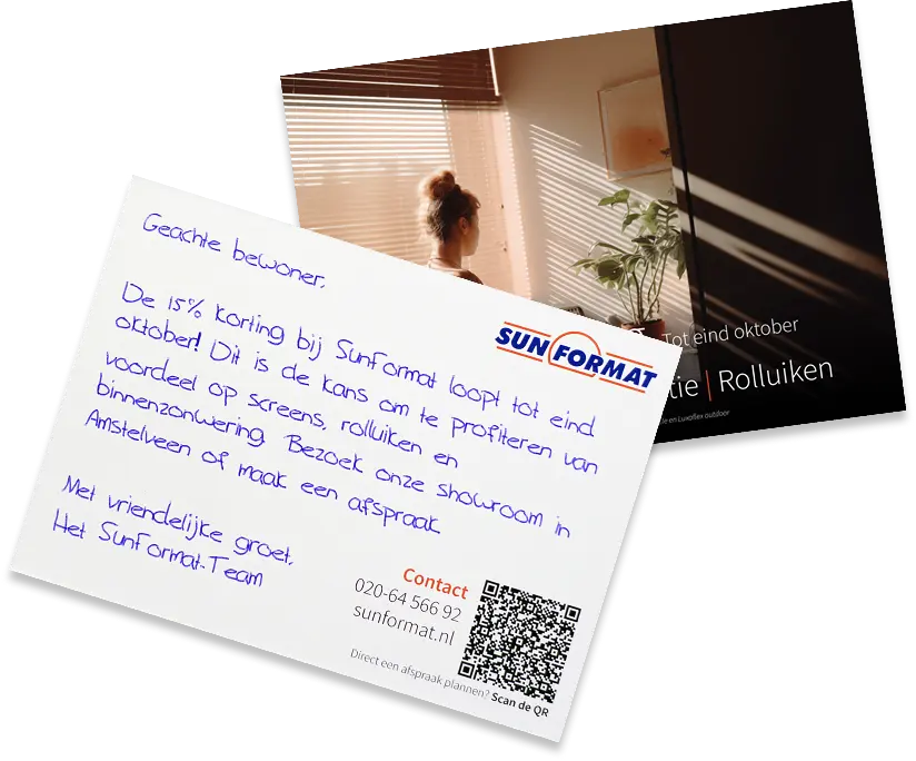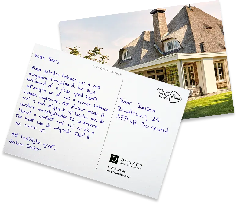 Een persoonlijke kaart laat zien: “Jij bent voor ons interessant.” Dat voelt anders dan een advertentie. Het voelt als erkenning en échte aandacht. Het laat zien dat je je onderscheid van de rest van concurrentie. Dat je ‘outside of the box’ durft te denken. En dát zet mensen aan tot actie.