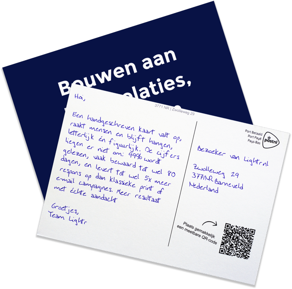 Dat hangt af van je doelgroep, boodschap en timing. Wat we wél zeker weten: handgeschreven kaarten vallen op, blijven liggen en zorgen aantoonbaar voor hogere betrokkenheid, meer herhaalaankopen en een hogere klantwaarde. We denken graag met je mee om het maximale uit jouw campagne te halen.